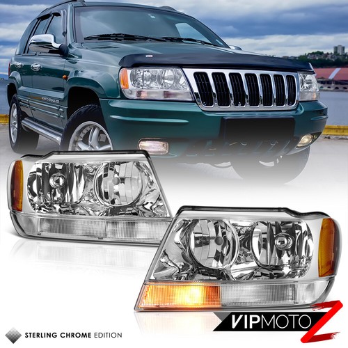 For 99 04 Jeep Grand Cherokee Wj Clear Signal Bar Chrome Headlights Assembly Ebay